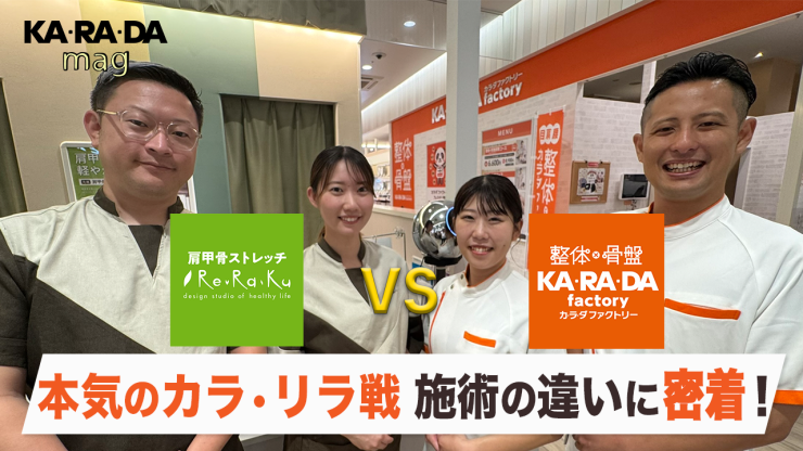 更新情報★【対決企画】カラダファクトリーvs. Re.Ra.Ku 【本気のカラ・リラ戦】施術の違いに密着!