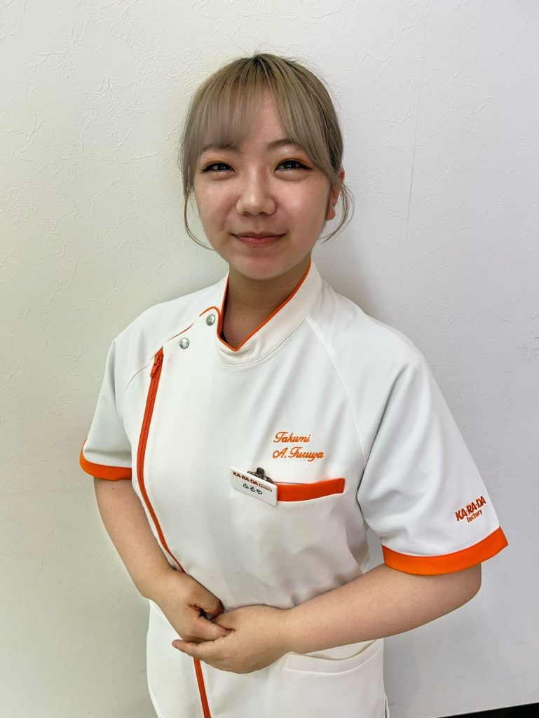 ・Profile:東京リゾート&スポーツ専門学校卒業後、2024年2月早期研修を開始し、4月新卒でファクトリージャパン入社。2024年4月カラダファクトリーアトレ新浦安店配属を経て、2025年5月同イオンモール幕張新都心店に着任(現任)。