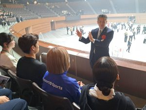第一部「スポーツトレーナー科によるボディメンテナンス実践」審査員(各校の予選を勝ち抜いた代表学生10名を審査)