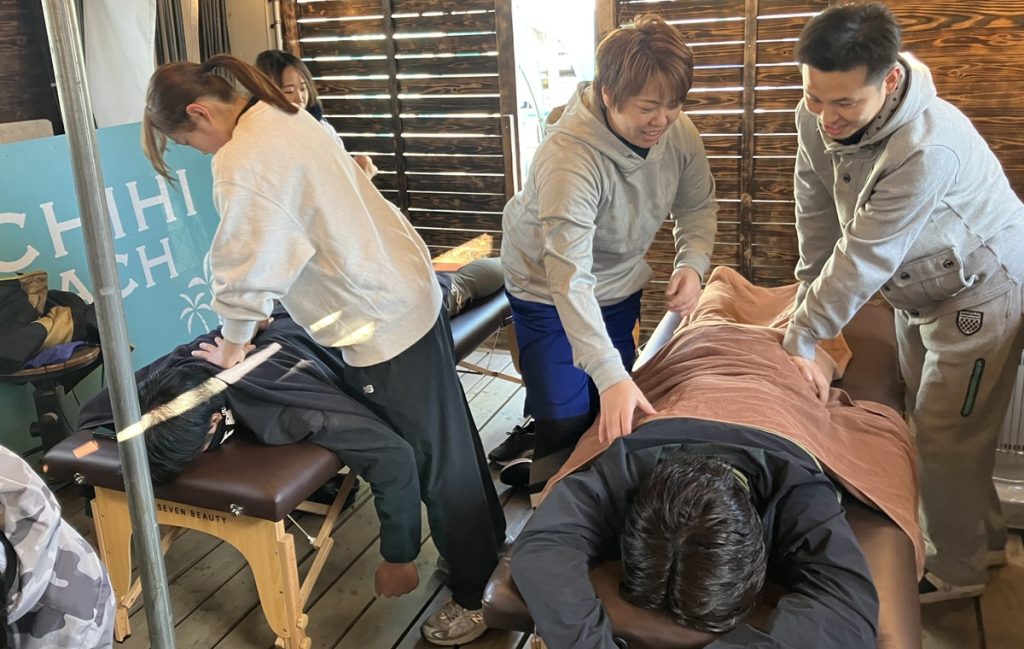 トレーナーを志すメンバーには、「店舗での活躍が、スポーツ現場での価値に直結している」ということを伝えています。日常の施術で磨かれるホスピタリティや技術こそが、現場で最も必要とされるスキルだからです。