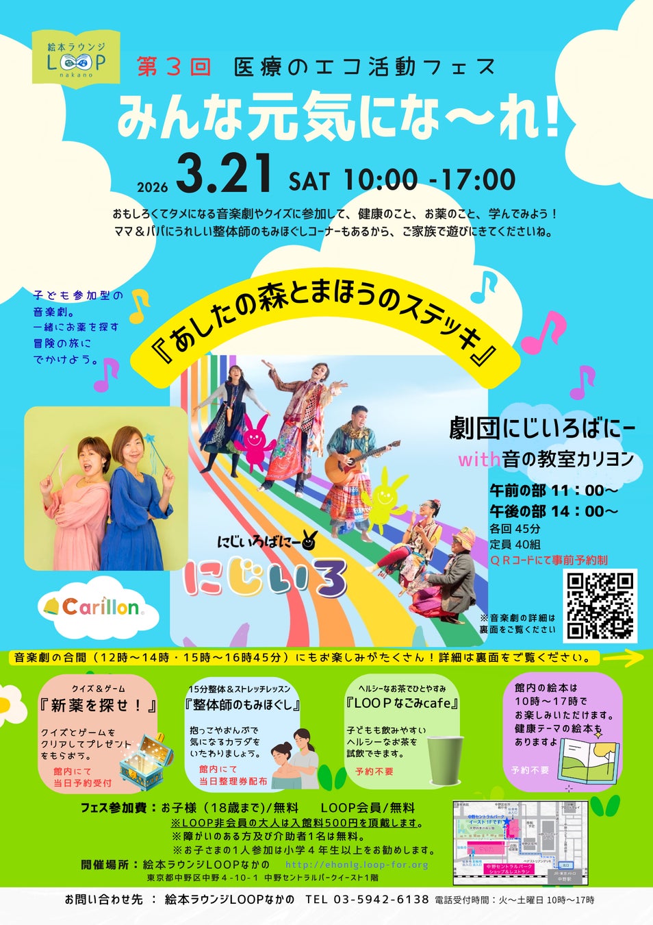 整体×骨盤サロン「カ・ラ・ダ ファクトリー」(以下 カラダファクトリー)を展開する株式会社ファクトリージャパングループ(本社:東京都千代田区、代表取締役社長:春名秀樹、以下 ファクトリージャパン)は、2026年3月21日(土)に、東京都中野区で行われた絵本ラウンジLOOPなかので開催されたイベント「第3回 医療のエコ活動フェス みんな元気にな~れ!」(以下、本イベント)に出展いたしました。